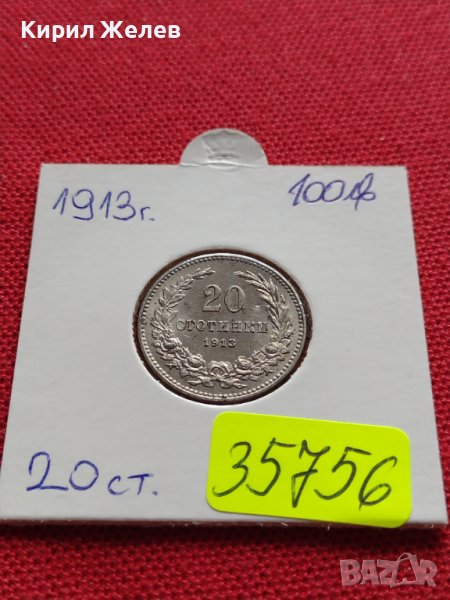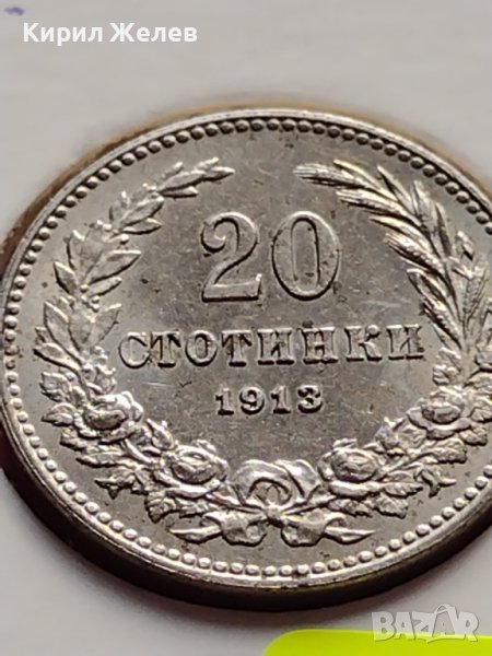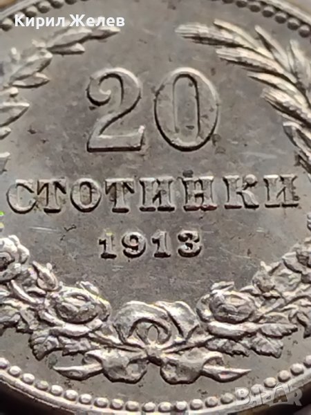 МОНЕТА 20 стотинки 1913г. ЦАРСТВО БЪЛГАРИЯ УНИКАТ ПЕРФЕКТНО СЪСТОЯНИЕ РЯДКА ЗА КОЛЕКЦИЯ 35756