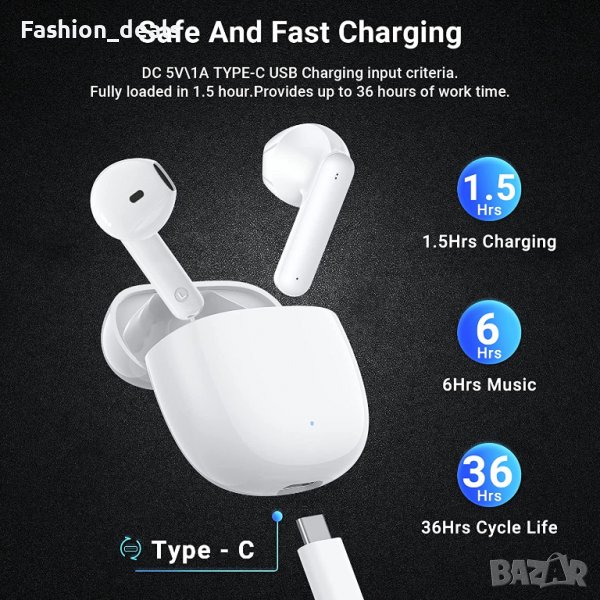 Нови Безжични слушалки Спортни с кутия за зареждане Earbuds за музика