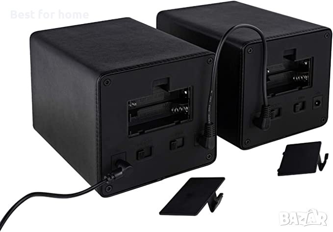 2 вида захранване: Устройството за навиване на часовник MOZSLY може да работи с променлив ток (100-240 V) или 2 x AA батерия (не са включени), свързващият кабел (предоставен) ви позволява да свържете удобно няколко устройства за навиване на часовници. (ЗАБЕЛЕЖКА: Тези два режима на захранване не могат да се използват едновременно. Ако е избрано захранване от AA батерия, променливотоковият адаптер трябва да бъде изключен. Ако е избран променливотоковият адаптер, AA батерията трябва да се извади.)