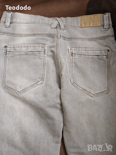 Детски дънки there here, ръст 152, цвят сиви подплатени с памучна тънка подплата, без забележки. В комплект с блуза плетиво s. Oliver, ръст 152. Зелена ватирана блуза размерът се вижда на снимката, цена за всичко15