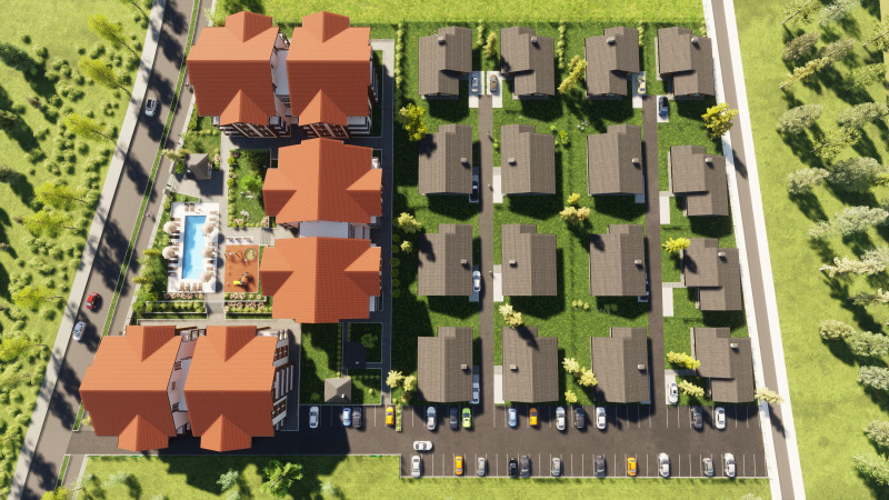 Комплекса ще се състои от 6 сгради с 120 апартамента, 16 еднофамилни къщи, Плувен Басейн,
