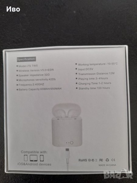 Продавам безжични слушалки i7S TWS чисто нови(никога не са ползвани) - спешно и изгодно! Спецификациите се виждат на снимките. За София лично предаване!