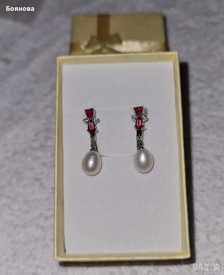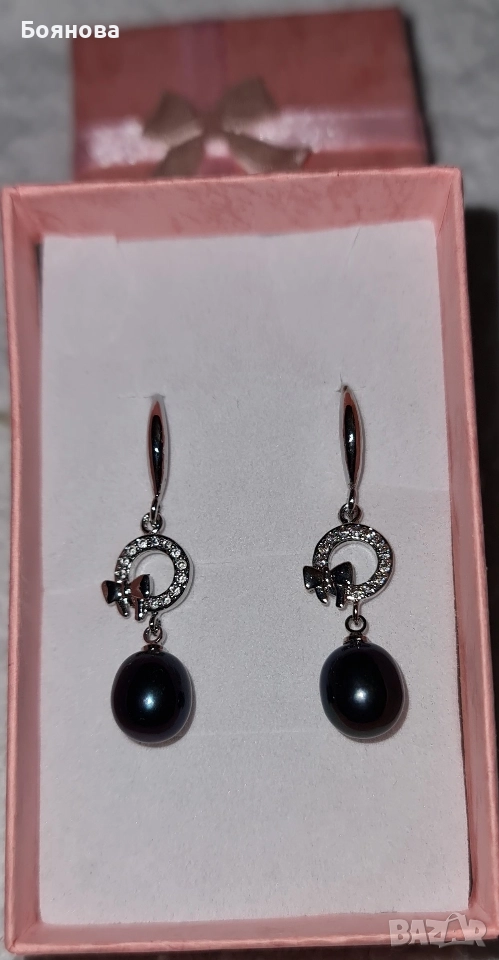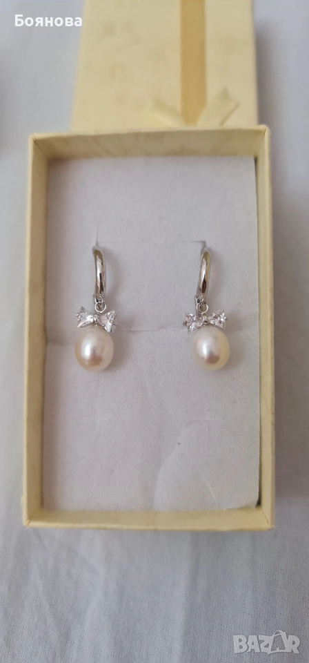 Нежни Обеци от естествени перли и сребро 925.С черна подаръчна торбичка и кърпичка за почистване.Каквото виждате,това получавате.