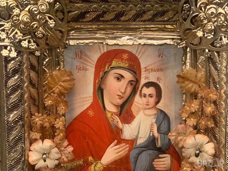 Руска домашна празнична икона Тихвинская чудотворна богородица от 19-ти век → Обява 39685827