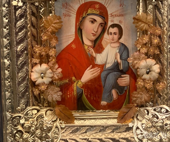 Руска домашна празнична икона Тихвинская чудотворна богородица от 19-ти век