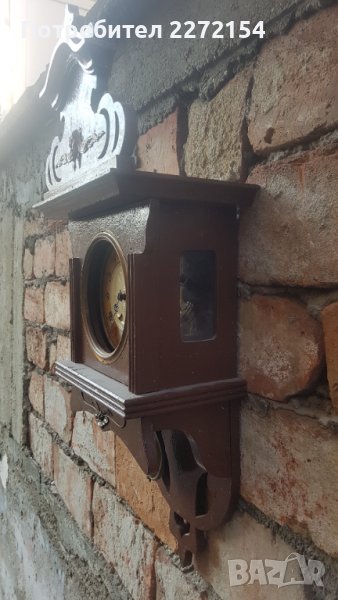 Работи без да спира и звъни на 1/2 и цял час. Липсва предното стъкло на вратичката и минутната му стрелка. С оригинален ключ за навиване.Височина 75см ширина 29см дебелина 18 см. За друг град изпращам по Еконт след като получа 20лв капаро, което приспадам .
