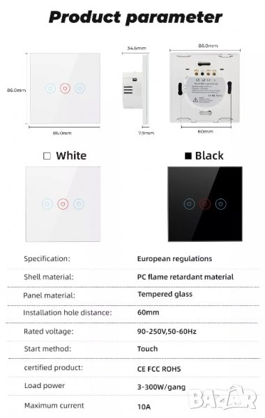 Елегантен дизайн и икономичност: Гладката повърхност не събира прах и е лесно за почистване. Енергийно ефективен - не консумира енергия в режим на изчакване.