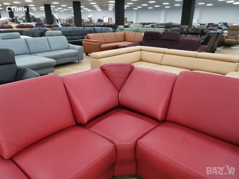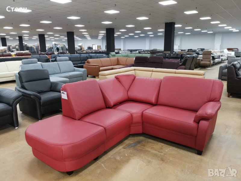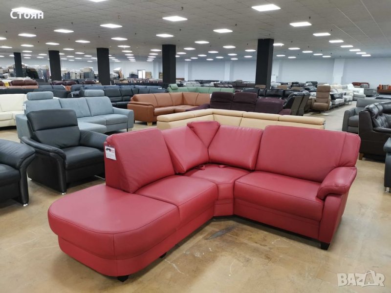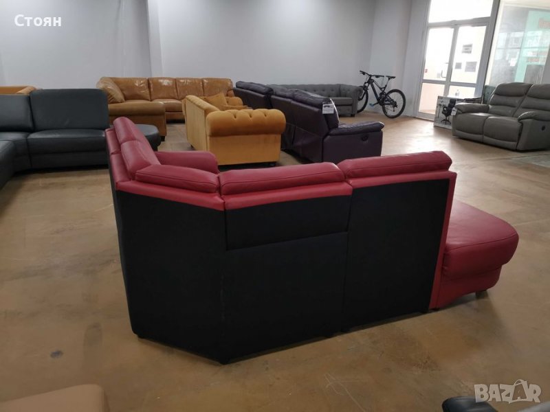 Червен кожен ъглов диван "KS6072" - естествена кожа в отлично състояние - нов! С подвижни релаксиращи облегалки на ъгловата седалка.