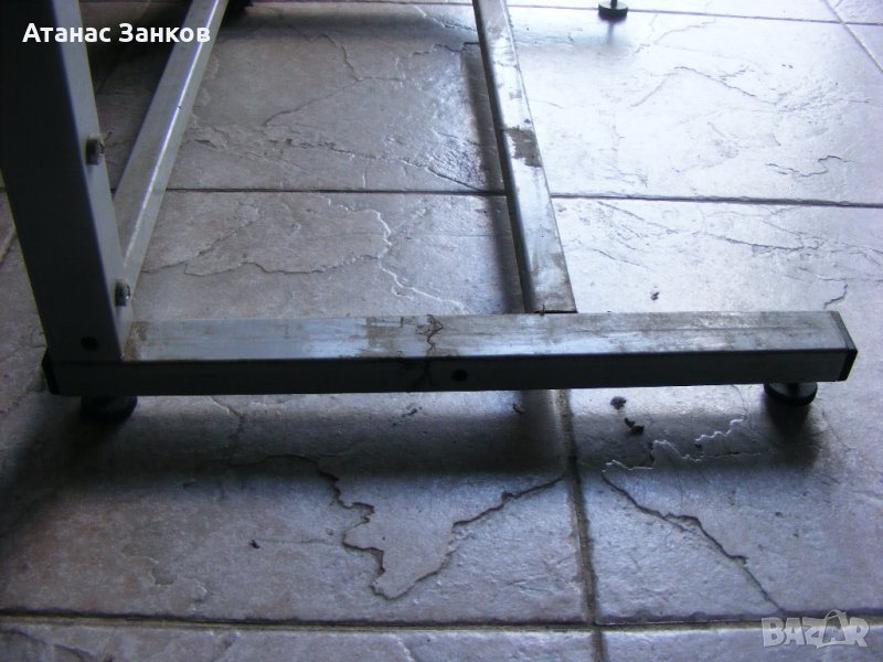 Стабилен, метален, прахово боядисван. Продава се това, което е снимано, нямам други лавици или неща към него.