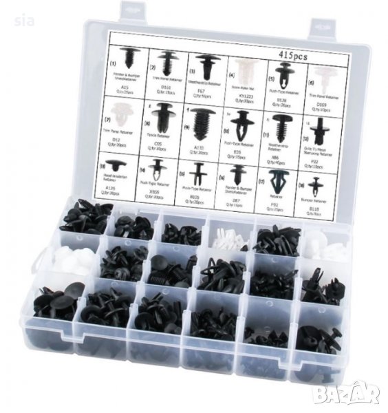 В кутията са включен 415 бр. щипки от показаните на снимката модели.