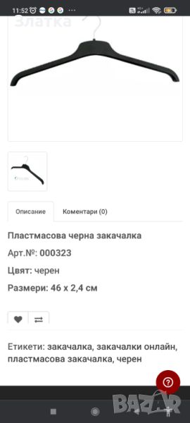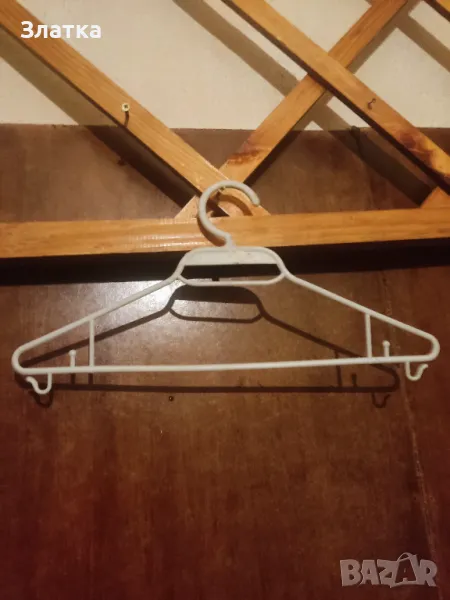 Продавам закачалки за дрехи по 50 ст. за брой. Ако се купят всичките около 300 броя, тогава цената е 30 стотинки за закачалка. Дрехи втора ръка, обувки, боти, ботуши... Продавам също и щендери - никелирани, телескопични, прави с дължина 1,60 м. и наклонени. Голямо предимство на наклонените щендери е, че заемат по-малко място в магазина ви! Още снимки при поискване. Може бартер само за злато - 150лв. за 1 грам! При закупуване на повече неща и от другите ми обяви, естествено, че ще има МНОГО ГОЛЕМИ отстъпки!
