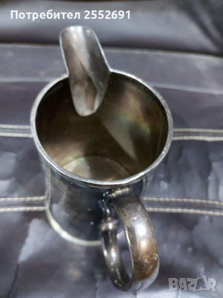 Масивна, дебело посребрена, старинна кана. Размери- 14/15/9,5см. Наличие на маркировка- EPNS A1