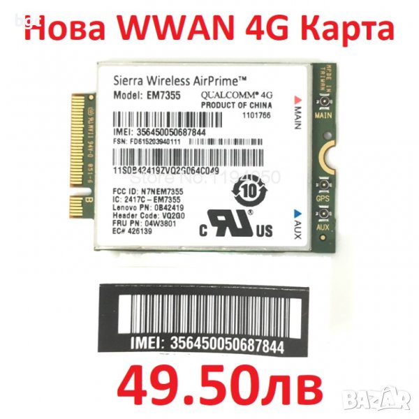 1 Gobi5000 EM7355 4G карта (без CD драйвери - инсталират се автоматично)