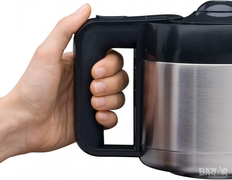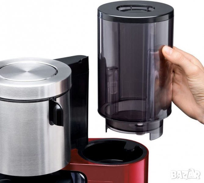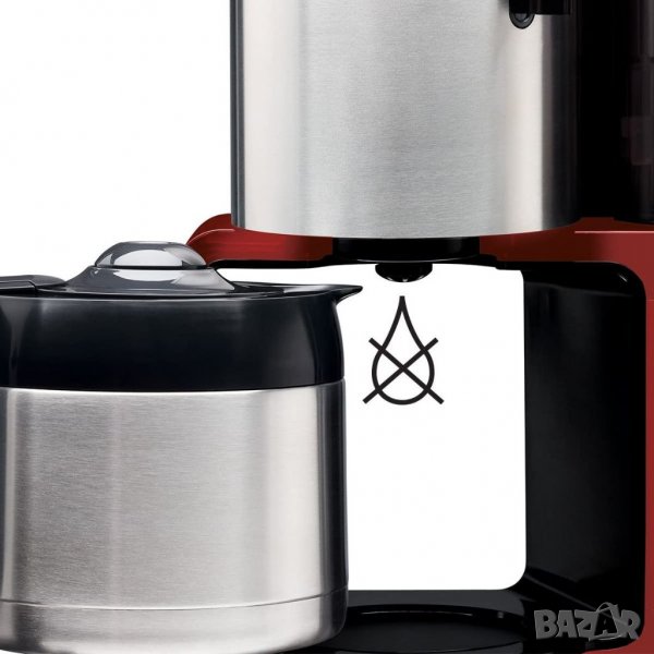 Кафе машината Siemens TC86504 с термокана от неръждаема стомана и филтърен корпус се отличава не само с външен вид, но и с функционалност. Това поддържа кафето горещо, като същевременно запазва аромата. Машината дължи това преди всичко на технологията AromaSensePlus за оптимален аромат на кафе - дори при малки количества. TC86504 има таймер с функция за памет и часовник за предварително програмиране на началния час. Автоматично изключване веднага след края на варенето и температурен предпазител служат като защитни функции. Дисплей също предоставя информация за калцификатите, които могат да бъдат отстранени бързо и лесно с натискането на бутон с интегрираната програма за декалцификация.