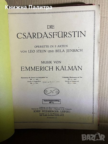 Die Csardasfürstin Emmerich Kálmán , снимка 1 - Специализирана литература - 39697167  Die Csardasfürstin Emmerich Kálmán , снимка 2 - Специализирана литература - 39697167 1/2