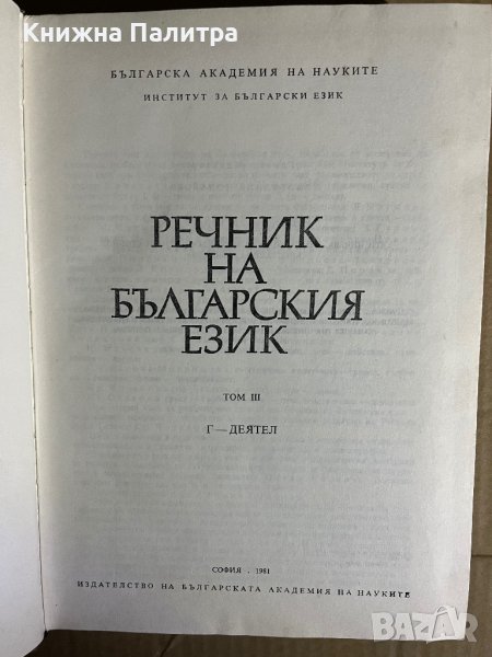 Речник на българския език. Том 3: Г-Деятел , снимка 1 - Чуждоезиково обучение, речници - 39698475 Речник на българския език. Том 3: Г-Деятел , снимка 2 - Чуждоезиково обучение, речници - 39698475 1/2