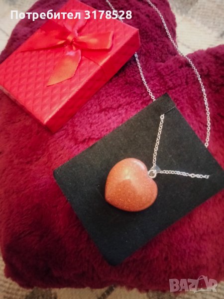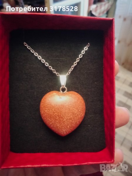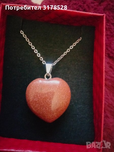 Масивна висулка с кафяв авантюрин под формата на сърце със синджирче за шия от медицинска стомана.