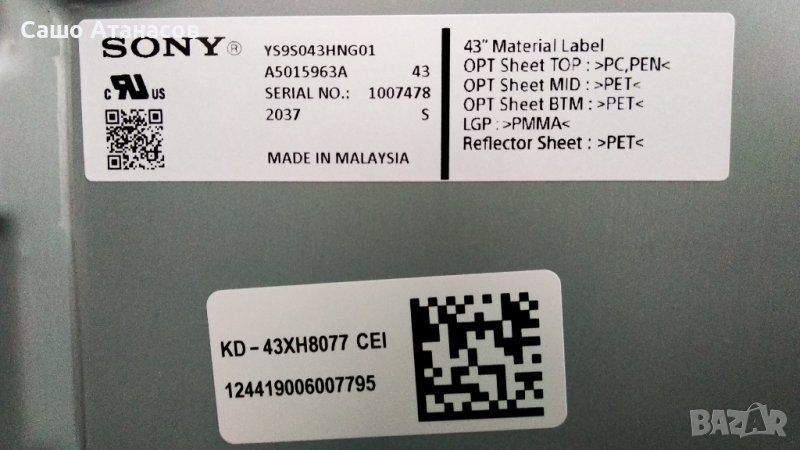 Модули от телевизор SONY KD-43XH8077 със счупена матрица (панел YS9S043HNG01 / KD-43XH8077 CEI )