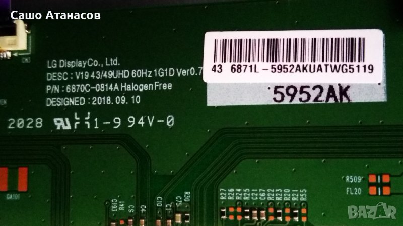 T-Con Board: V19 43/49UHD 60Hz 1G1D Ver0.7 ( 6870C-0814A / 6871L-5952AK ) - не е наличен