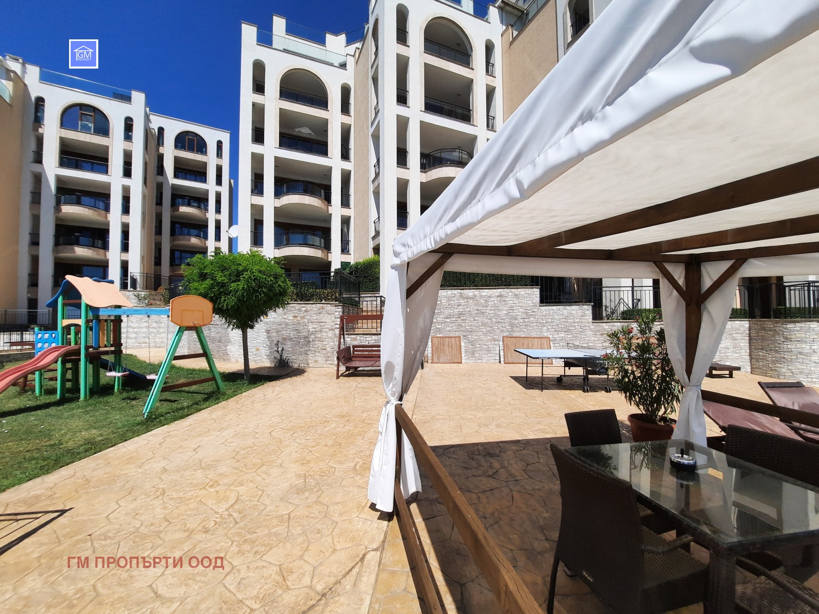 Комплексът е разположен на висока кота, поради което не е възможно другите сгради да закрият панорамната гледка. Освен това от страна на морето парцелът граничи с територия на градския парк.