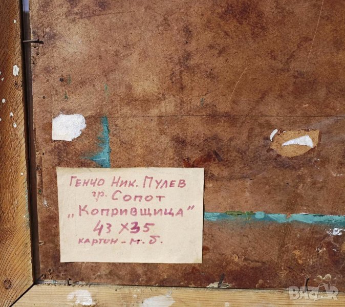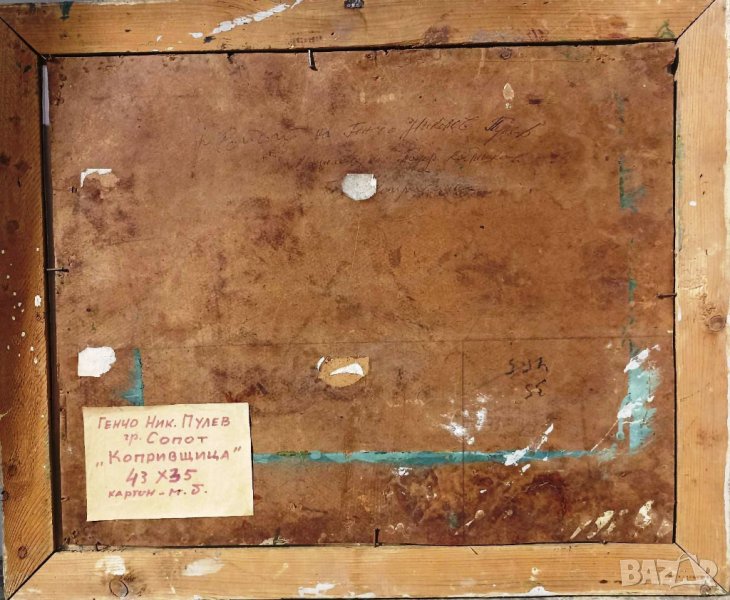 КАРТИНАТА Е В МНОГО ДОБРО СЪСТОЯНИЕ ЗА КОЛЕКЦИЯ, С ЛЕКИ ЗАБЕЛЕЖКИ. ПРОДАВА СЕ С ОРИГИНАЛНАТА СТАРА РАМКА И СТЪКЛО. МАСЛО НА КАРТОН С РАЗМЕРИ 43/35 СМ. РИСУВАНА ОТ ХУДОЖНИКА ГЕНЧО ПУЛЕВ. ВЕРОЯТНО Е РИСУВАНА 60-ТЕ ГОДИНИ. АКО ИМАТЕ ВЪПРОСИ МИ ПИШЕТЕ СЪОБЩЕНИЕ.