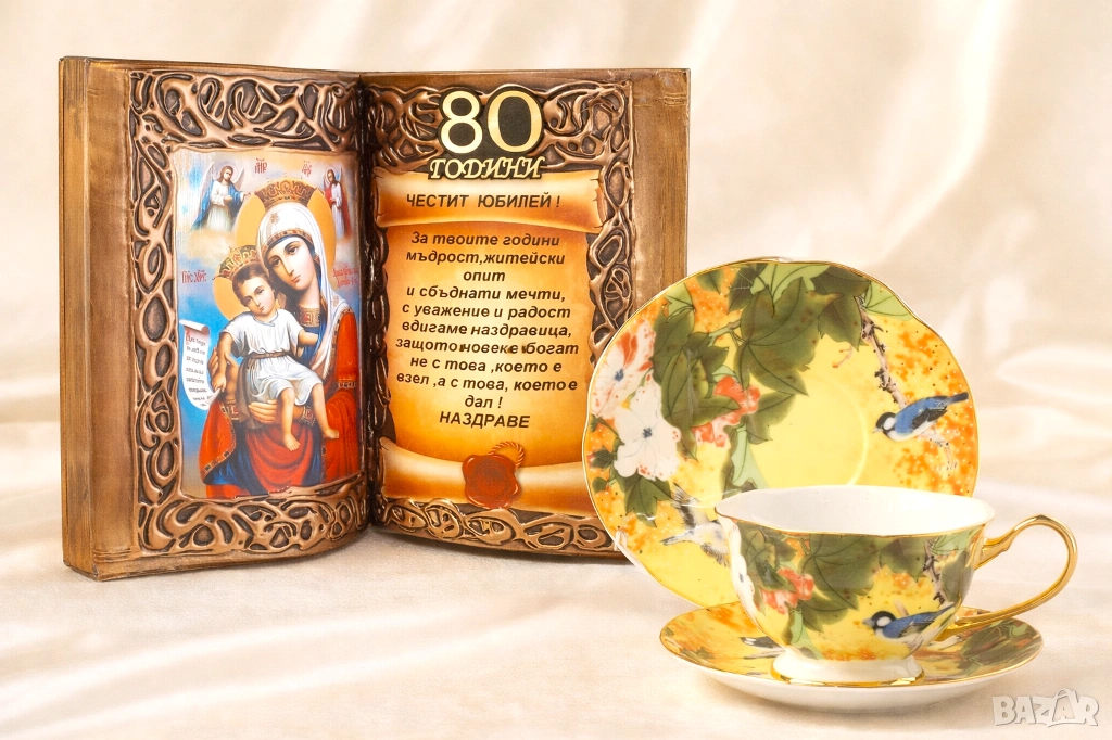 Авторска творба - икона под формата на книга с оригинално пожелание за 80 годишнина на жена или мъж.