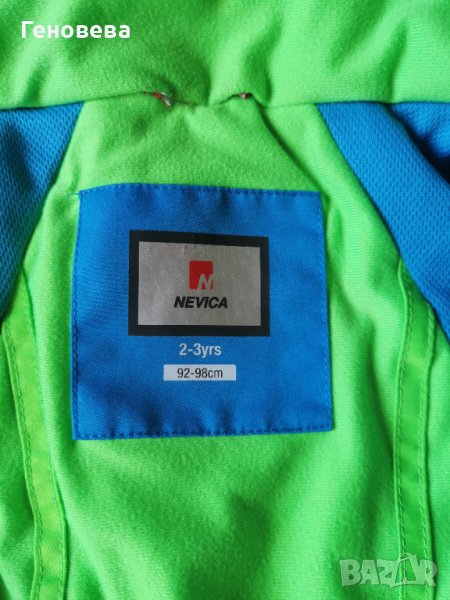 Скиорско яке на "Nevica" за момченце.По етикет е 98ми размер, но е уголемено. За от 3 до 4г е според мен.