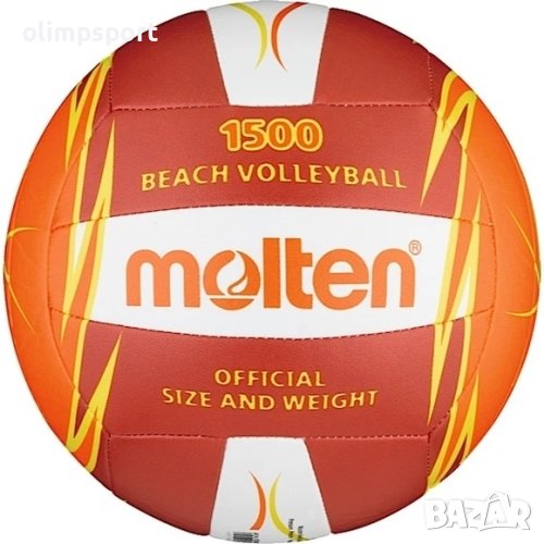 Топка за плажен волейбол Molten V5B1500-RO. Изработена от висококачествена изкуствена кожа, бутилов плондир и машинно зашити шевове. Топката е с официални тегло и размери. Брой панели - 18. Размер - 5. Тегло - 260-280 г. Обиколка - 65 - 67 см. Материал топка - изкуствена кожа. Материал плондир - бутил.
