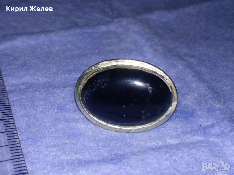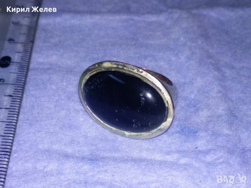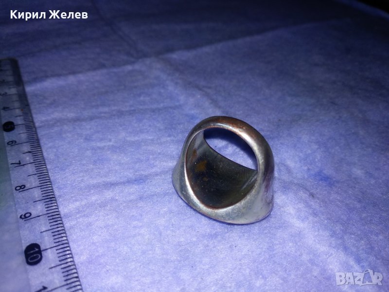 СТАР МАСИВЕН МОДЕН ПОСРЕБРЕН МЕДЕН АРТ ПРЪСТЕН с ШЛИФОВАН МИНЕРАЛ 36966