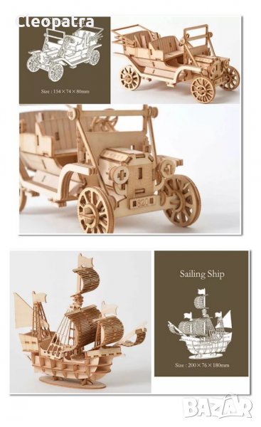 Нови модели на 3D дървени пъзели ,които ще разнообразят ежедневието ви и ще красят дома . Интересно занимание за малки и голями ,сглобяемо и движещо според модела. Може да е подходящ подарък за всеки.