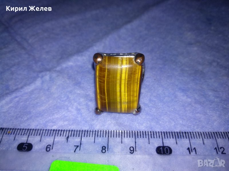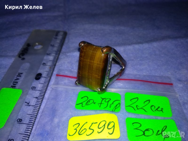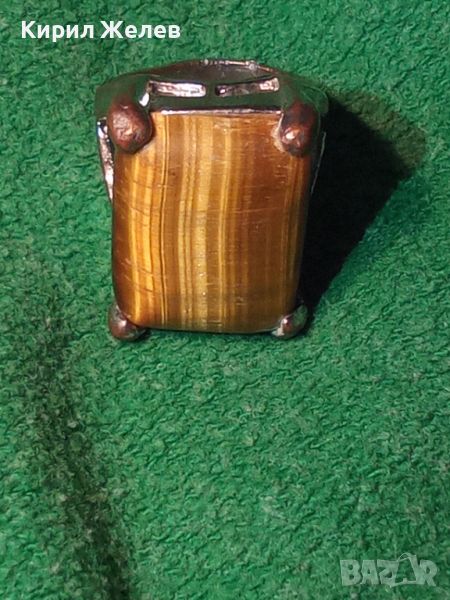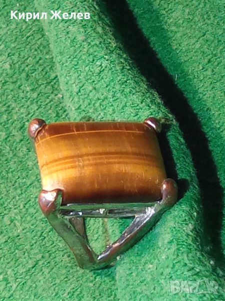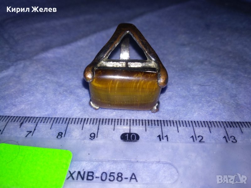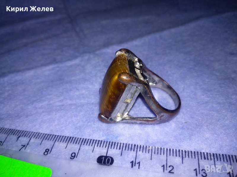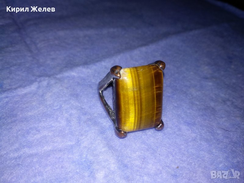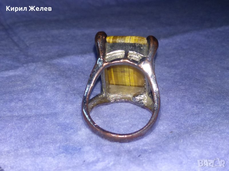 ПРЕКРАСЕН СКЪПОЦЕНЕН НИКЕЛИРАН МЕДЕН АРТ ПРЪСТЕН с ОГРОМЕН ЮВЕЛИРНО ШЛИФОВАН КАМЪК ТИГРОВО ОКО 36599