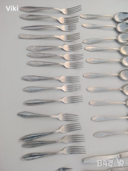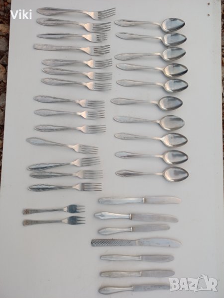 Вилици и лъжици до последно ползвани имаме 10 комплекта перфектни + 7 ножа + 2 малки вилици перфектни stainless 18/10