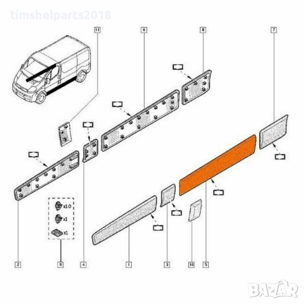 Лайстна Лява Странична за Renault Trafic II, Opel Vivaro, Nissan 2001-2013