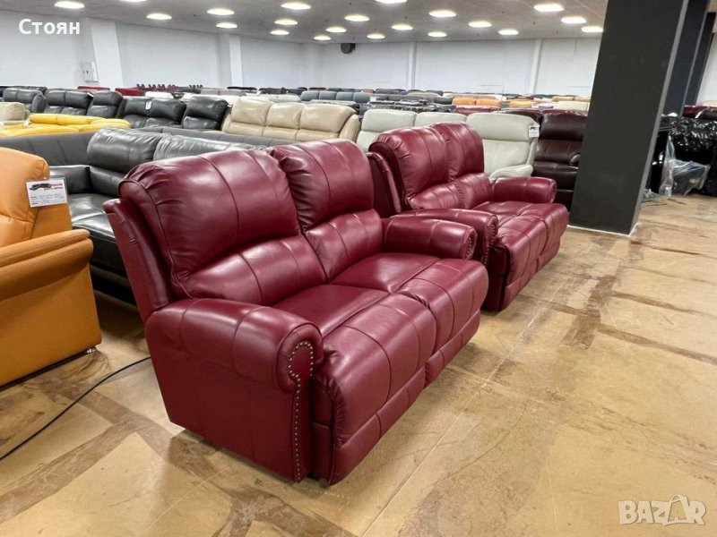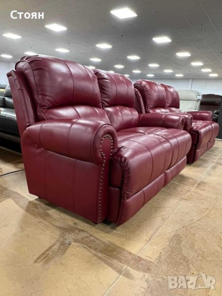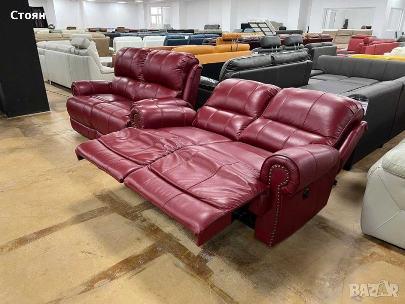 кожа в отлично състояние. Единият диван е с електрически релаксиращ механизъм за краката.