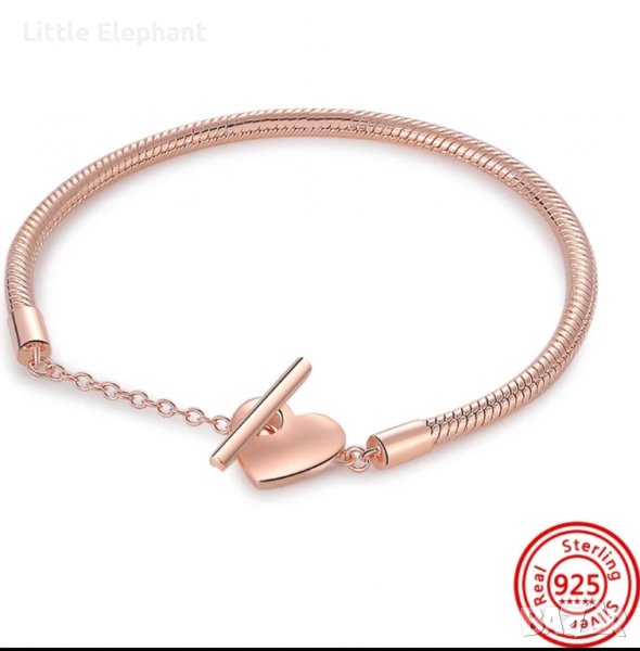 Сребърна гривна Пандора със змийска плетка"Стрелата на Купидон",17 см,Rose Gold/нова → Обява 39712104
