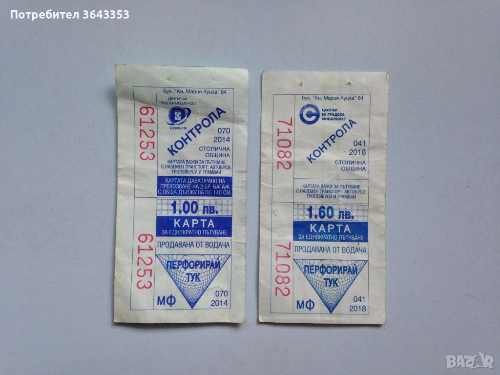 Стари билети за градски транспорт → Обява 39712570