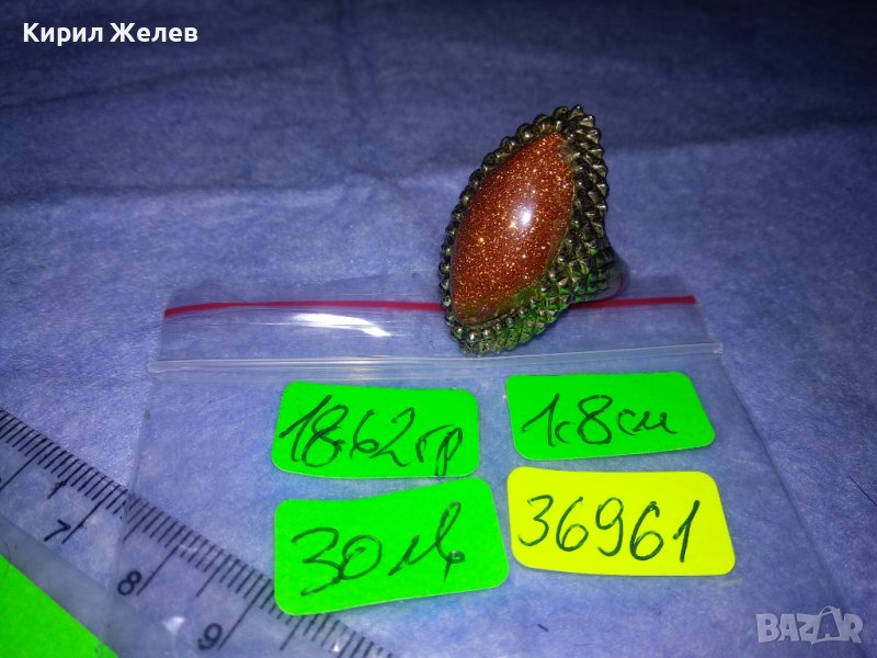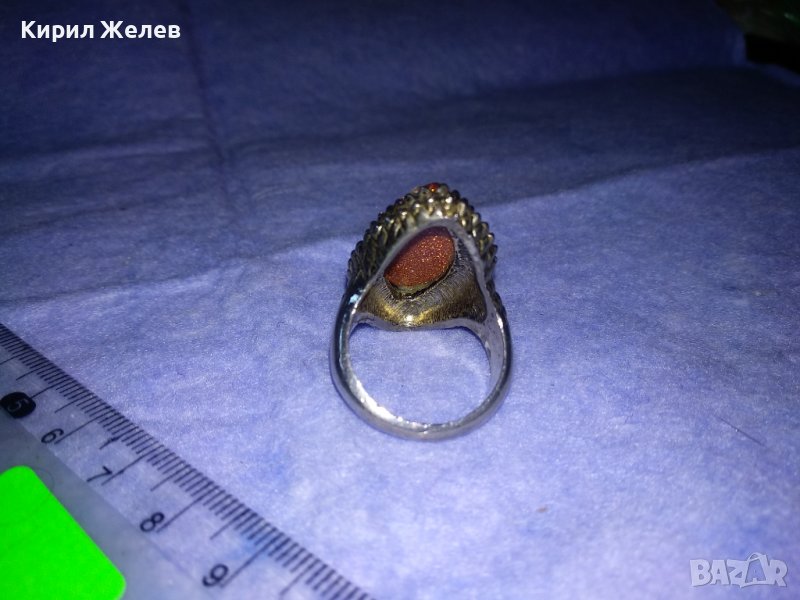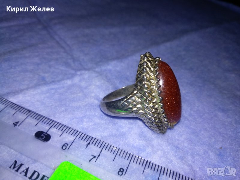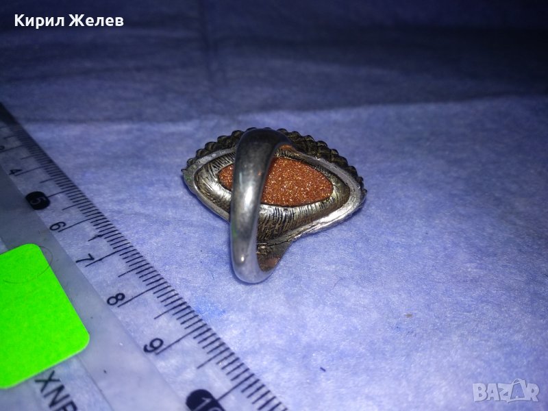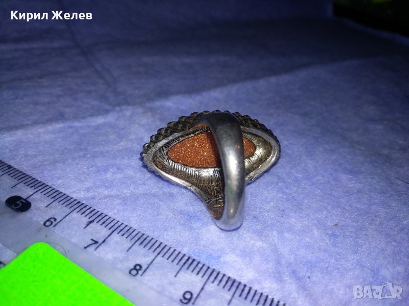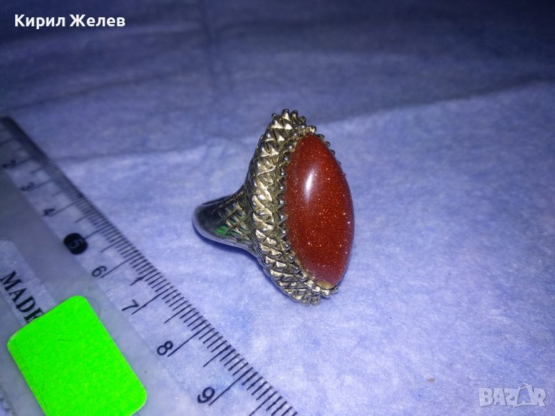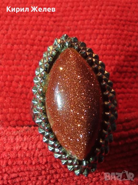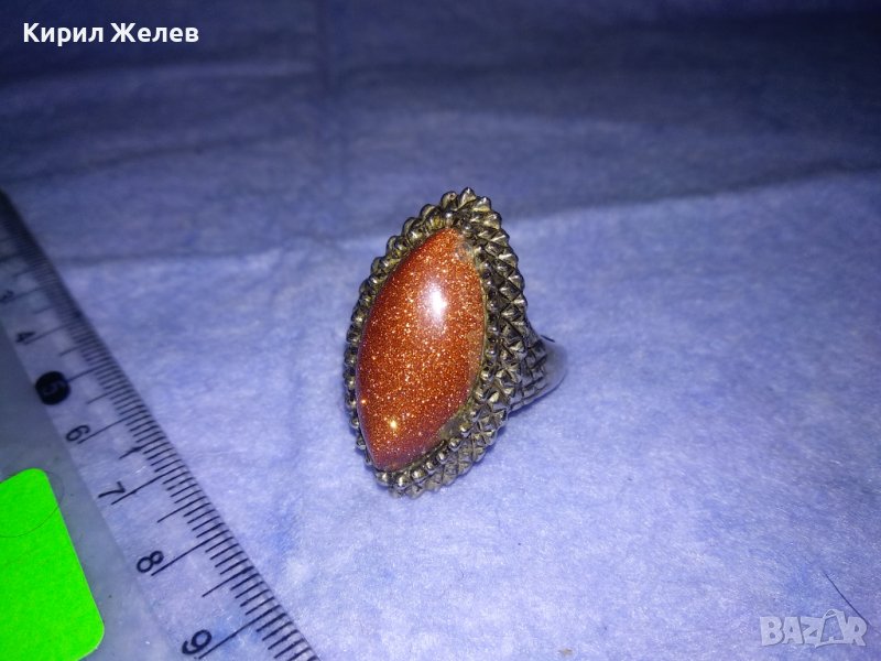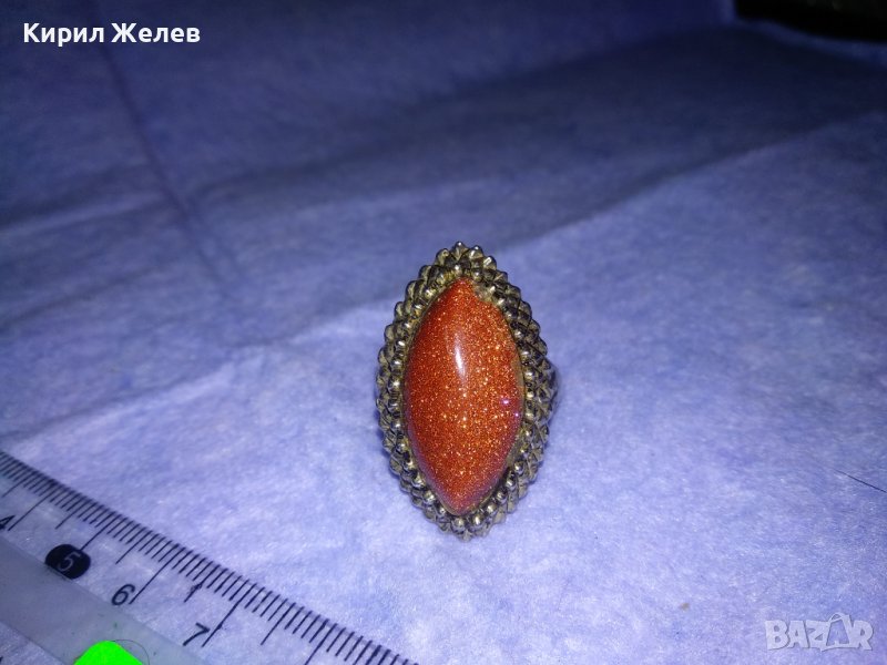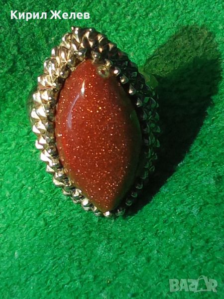 КРАСИВ СКЪПОЦЕНЕН ВИНТИДЖ АРТ ЗЛАТИСТ ПРЪСТЕН с ЮВЕЛИРНО ШЛИФОВАН КАМЪК АВАНТЮРИН 36961