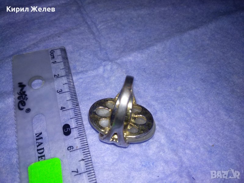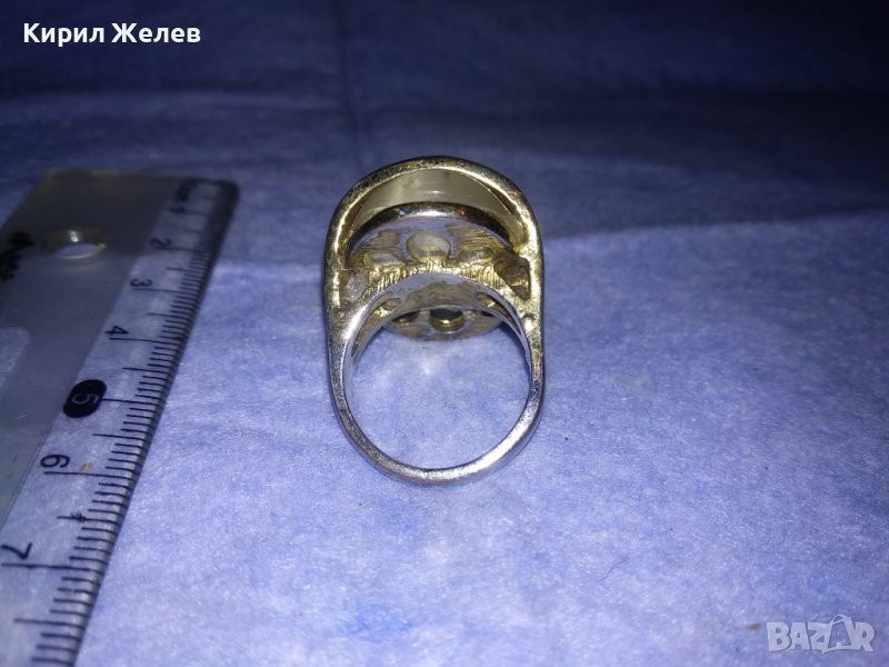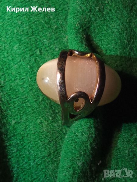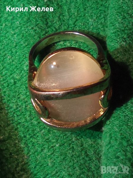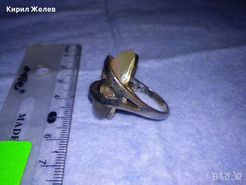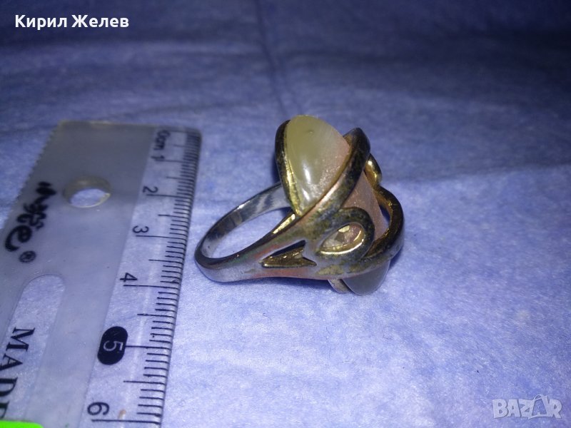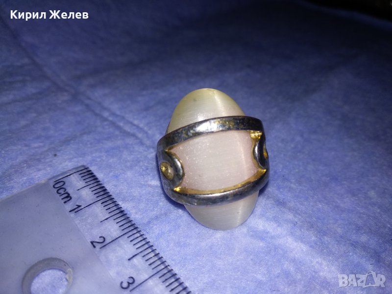 МЕДЕН ПОСРЕБРЕН РЕТРО ВИНТИДЖ СКЪПОЦЕНЕН ПРЪСТЕН с ШЛИФОВАН ИЗСКРЯЩ МИНЕРАЛ БЯЛО КОТЕШКО ОКО 36982
