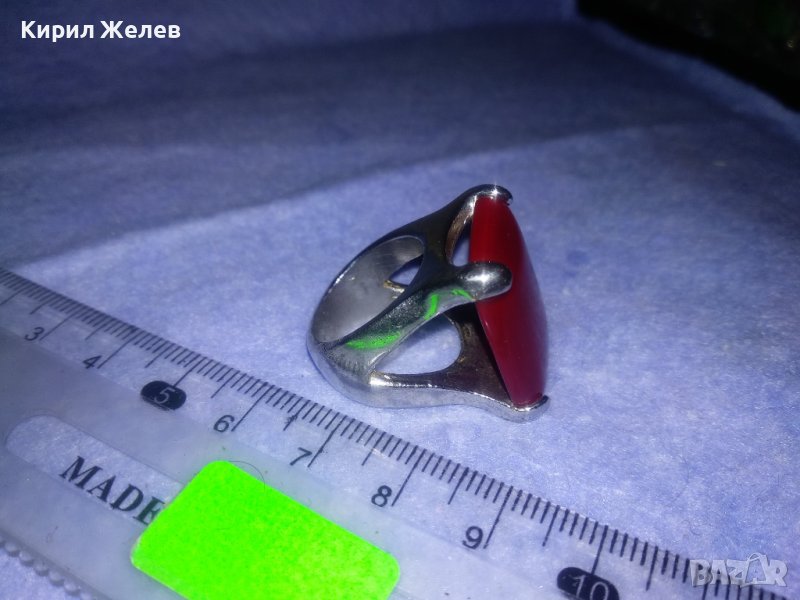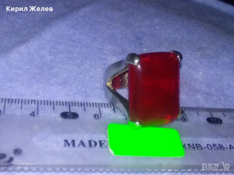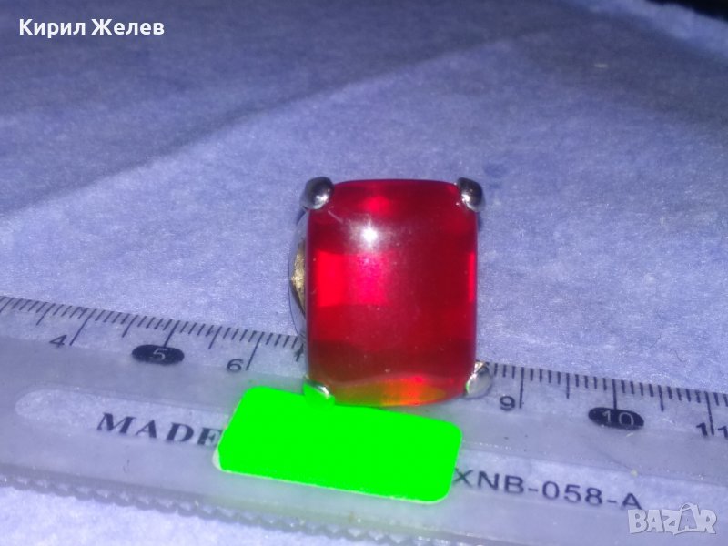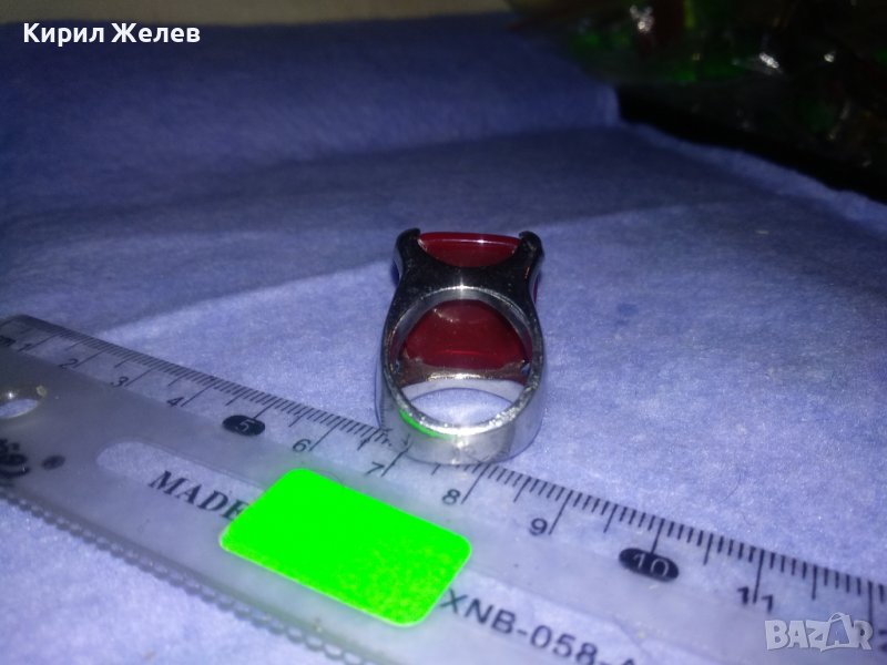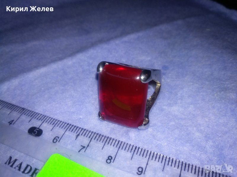 ВЕЛИКОЛЕПЕН ПОСРЕБРЕН МЕДЕН КЛАСИЧЕСКИ МОДЕЛ ПРЪСТЕН с ПООЛИРАН ПРОЗИРЕН ЧЕРВЕН МИНЕРАЛ КАМЪК 36985