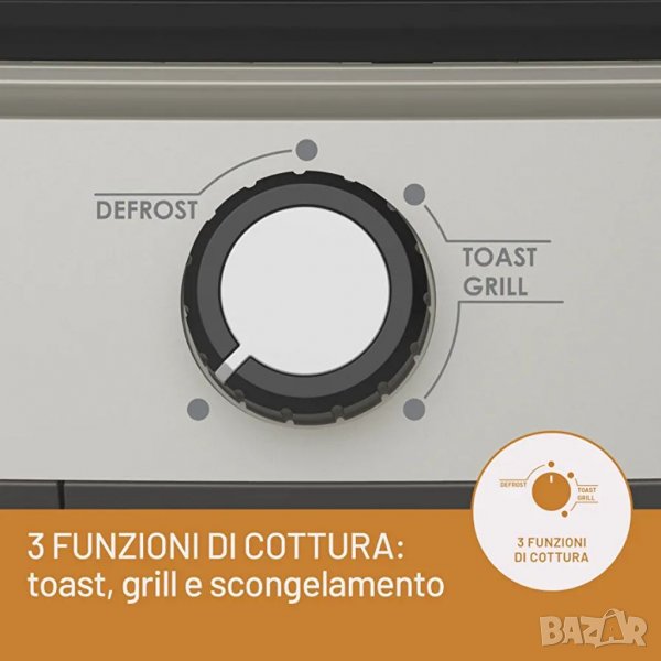 2000 вата, 3 функции за готвене: размразяване, препичане и грил за печене на месо, риба, зеленчуци, сандвичи, препечени филийки, брускети