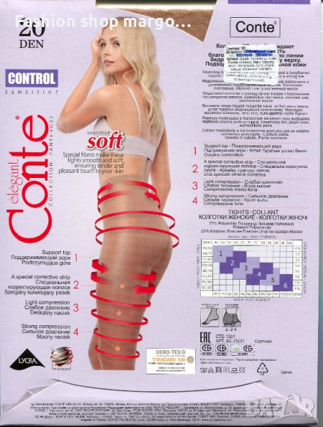 Чорапогащник стягащ Conte Soft 20 den, снимка 1 - Бельо - 39716818 Чорапогащник стягащ Conte Soft 20 den, снимка 2 - Бельо - 39716818 1/2