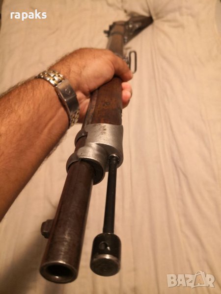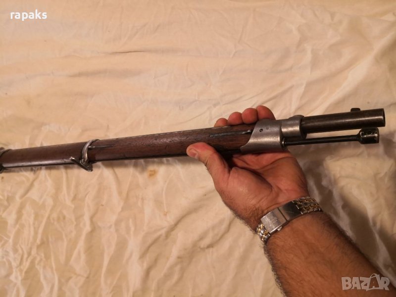 Пълен оригинал. Пехотна пушка, не карабина Амслер-Милбанк 1864-67. Множество маркировки, всичко налично, работи прекрасно.