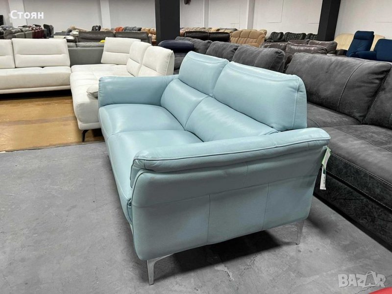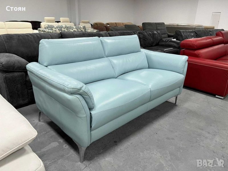Светло син кожен диван голяма двойка - 100 % естествена кожа в отлично състояние.