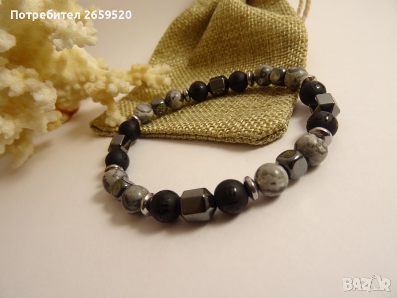 Водоустойчива мъжка гривна от естествени камъни → Обява 39719678
