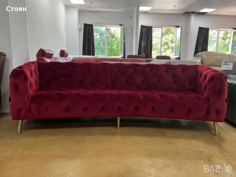 Бутиков Голям Пурпурно червен диван от плат Честърфийлд