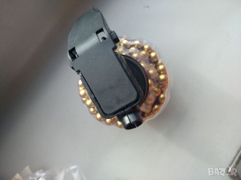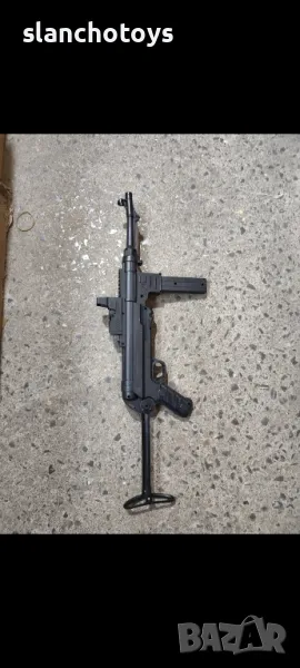 Автомат със сачми, с лазерен мерник, около 80см с разпънат приклад,65см със сгънат приклад. Сачмите се поставят в пълнителя. Сачмите се продават отделно,500 бр. за 6.90лв.или 800бр за 7.90лв.Еконт или лично за Сф.
