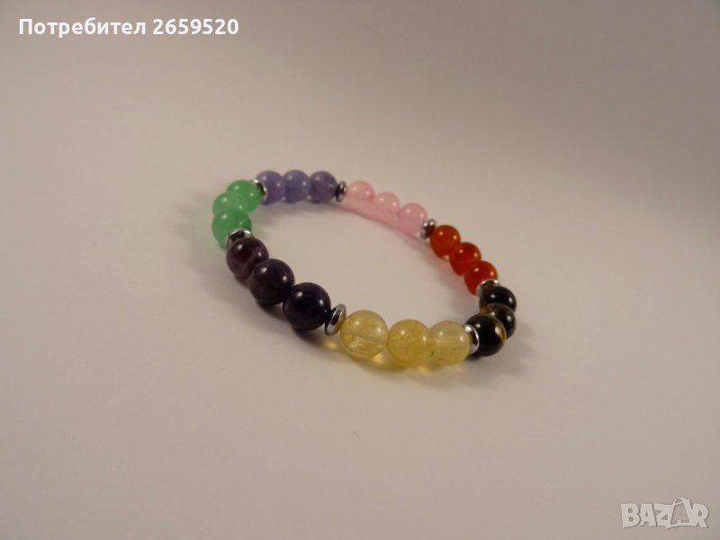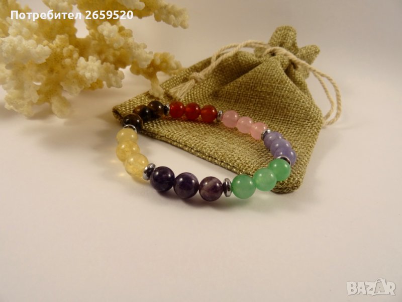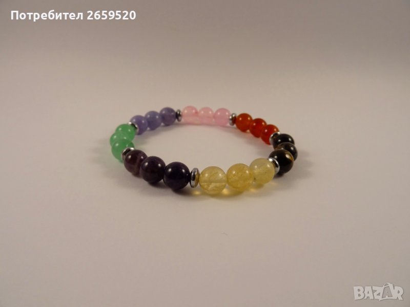 Гривната балансира чакрите в човешкото тяло и включва седем естествени камъка, всеки от които по своята природа и излъчване стимулира определен енергиен център.