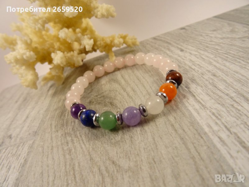 Гривната балансира чакрите в човешкото тяло и включва седем естествени камъка, всеки от които по своята природа и излъчване стимулира определен енергиен център.