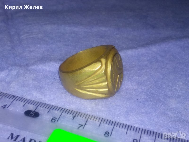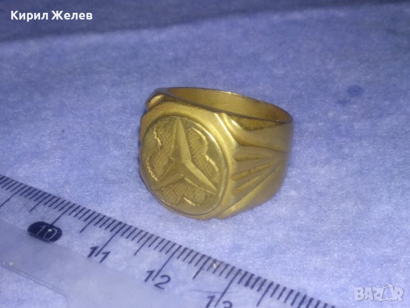 СТАР БРОНЗО РЕТРО ПРЪСТЕН с ЕМБЛЕМАТА на МЕРЦЕДЕС БЕНЦ и ПЕЧАТИ за ЗЛАТО 750 и 18К За КОЛЕКЦИЯ 32600