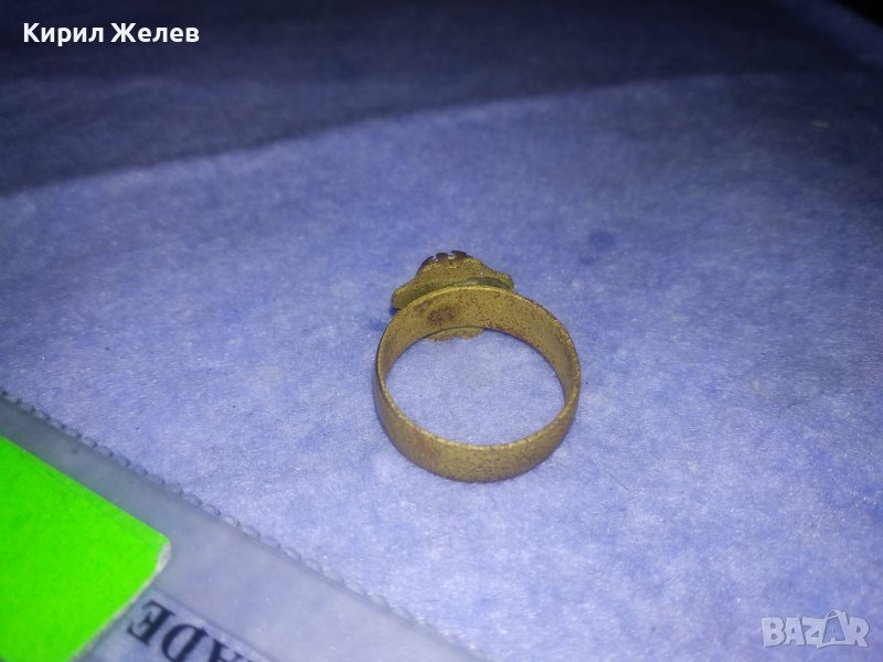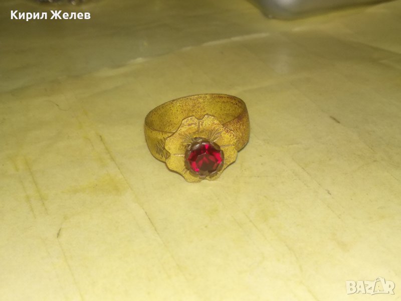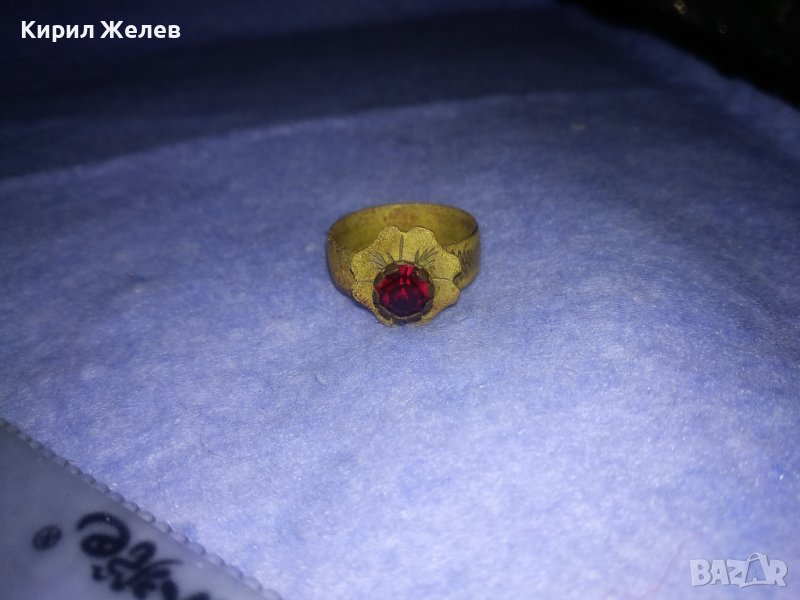 СТАРИНЕН СКЪПОЦЕН ФЛОРАЛЕН БРОНЗОВ РЕТРО ПРЪСТЕН - ЦВЕТЕ РЪЧНО ОРНАМЕНТИРАН с ФАСЕТИРАН ГРАНАТ 36617